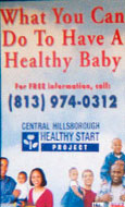 This campaign encourages pregnant women to call the Hillsborough Healthy Start office to receive free information on how to stay healthy during a term pregnancy.